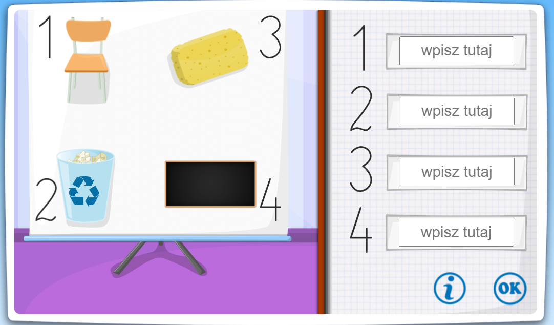 Places in school: ćwiczenia interaktywne dotyczące słownictwa opisującego miejsca w szkole po angielsku są dedykowane najmłodszym uczniom. Wspierają naukę wyrażeń związanych z szkołą, prezentując materiał w sposób dostosowany do ich poziomu zrozumienia. Mali uczniowie z przyjemnością odkrywają tajniki języka angielskiego, co sprawia, że nauka staje się fascynującą podróżą do świata nowych słów i umiejętności.
