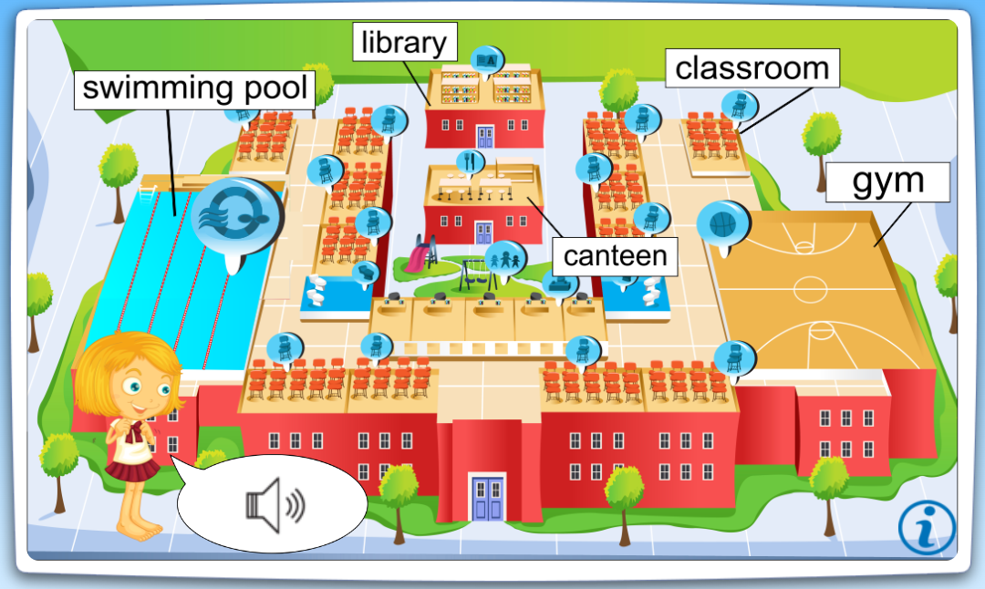 School: Multimedialne ćwiczenia multimedialne do nauki angielskiego słownictwa związanego ze szkołą. Mały uczeń nauczy się mówić o swoich ulubionych lekcjach i o zawartości swojego piórnika, a przy okazji miło spędzi czas.