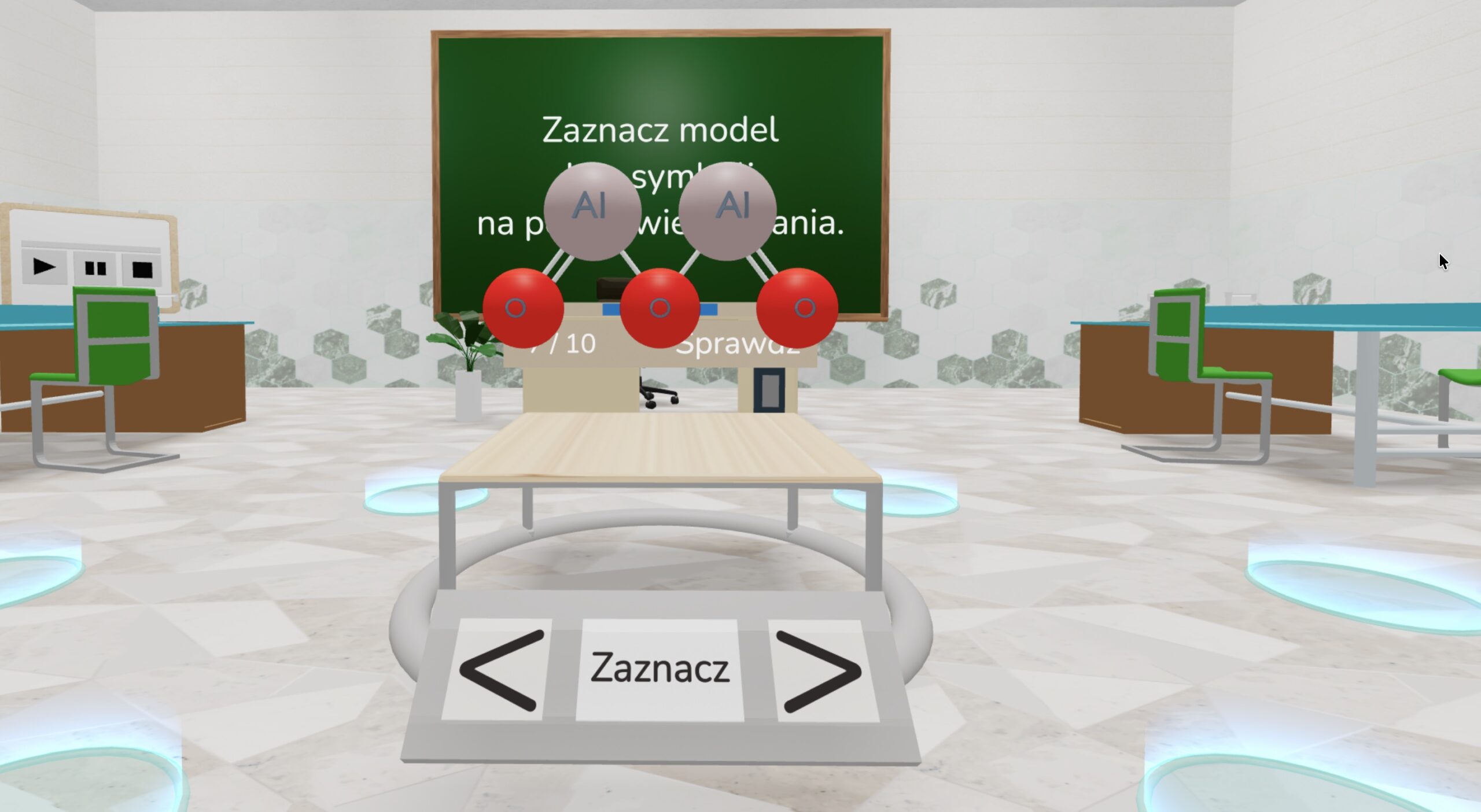 - quizy 2D, uzupełniające część VR i dostępne na platformie e-learningowej, zawierające zadania utrwalające, takie jak: rozpoznawanie związków na podstawie wzoru, dobieranie poprawnych zapisów chemicznych, uzupełnianie schematów oraz analizowanie zależności między wartościowością a składem cząsteczek,
