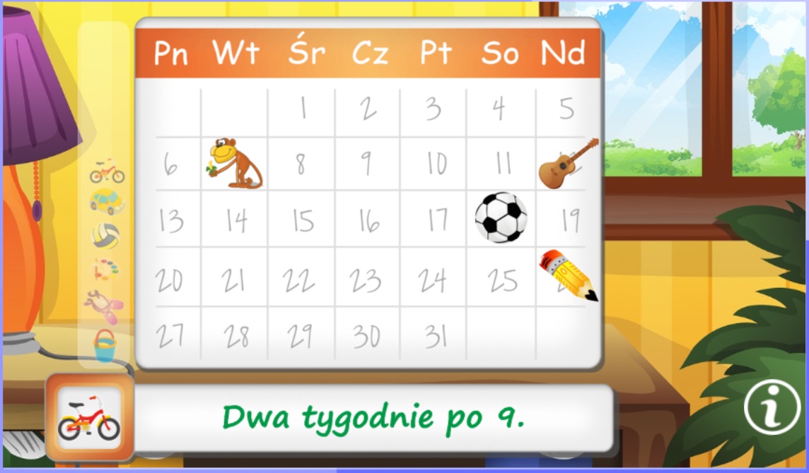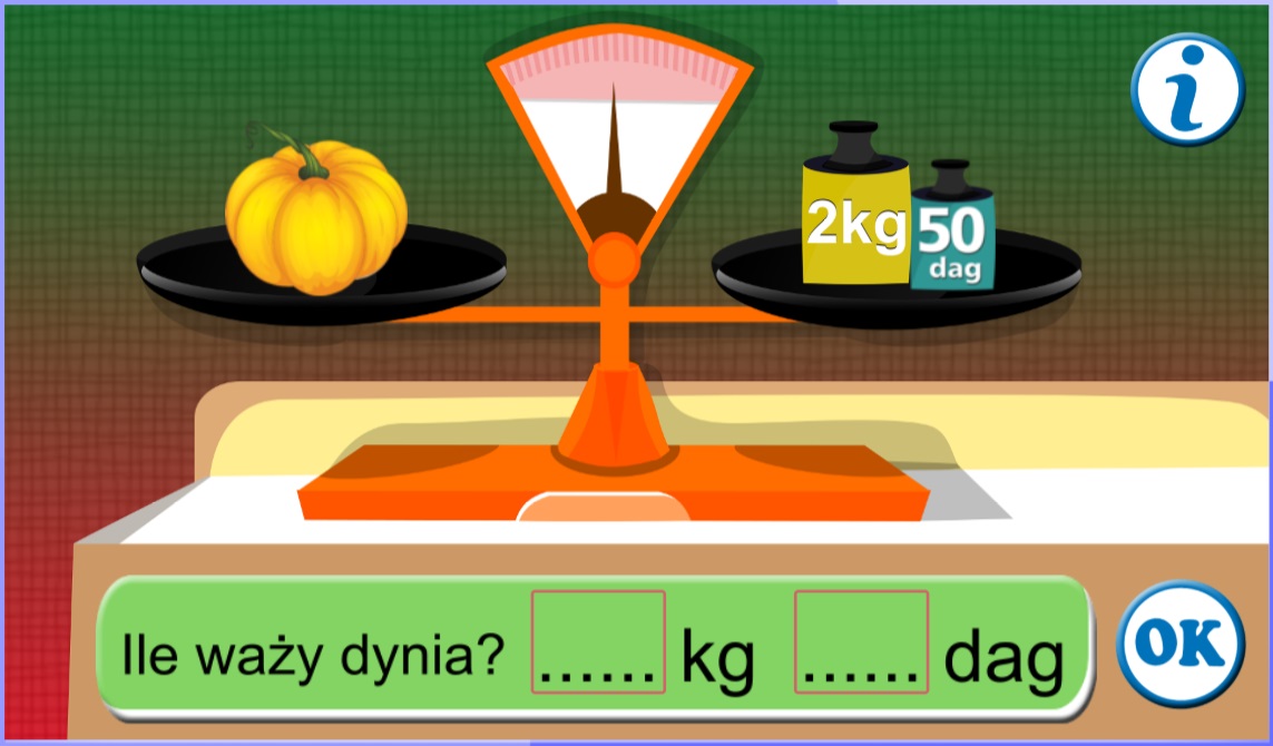 Quizy interaktywne przeznaczone do nauki matematyki przez zabawę: rozumienie liczb, posługiwanie się liczbami, liczenie, dodawanie i odejmowanie, nazywanie i rozpoznawanie figur geometrycznych, odczytywanie godzin na zegarze, nazywanie miesięcy i dni tygodnia, posługiwanie się kalendarzem, obliczenia pieniężne, wirtualna nauka mierzenia i ważenia.
