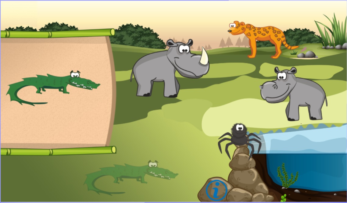 - Memory po angielsku dzikie zwierzęta. Gra memory. Uczeń utrwala nazwy dzikich zwierząt w języku angielskim. Zadaniem ucznia jest odkrywanie kart i łączenie w pary tych, które przedstawiają to samo zwierzę. Po znalezieniu pary uczeń usłyszy poprawną wymowę nazwy zwierzęcia. Słówka w grze: lion, tiger, elephant, giraffe, snake, zebra, monkey, parrot, spider.