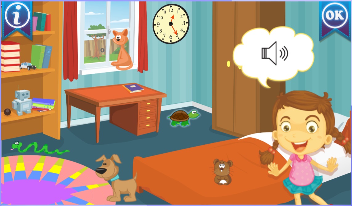 Program „Nauka angielskiego dla dzieci” zawiera quizy z obszarów Animals, Body, Town, House. Podczas nauki z quizami interaktywnymi do każdego tematu językowego dziecko ćwiczy: