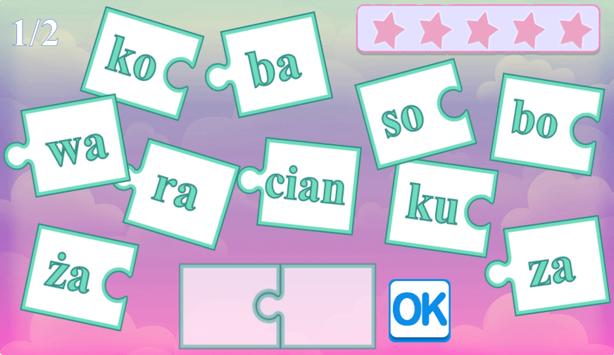 - Gry dla dzieci, które już znają litery, obejmują takie zadania, jak szukanie podobnych lub ukrytych liter, rozróżnianie samogłosek i spółgłosek, rozróżnianie słów o podobnym zapisie literowym lub brzmieniu, analizę i syntezę sylabową, uzupełnianie luk w słowach lub zdaniach, a także ćwiczenia wspierające zrozumienie relacji przyczynowo-skutkowej w zdaniach i tekstach. Multimedialne ćwiczenia interaktywne stanowią dla młodszych dzieci nie tylko doskonały trening sprawnego czytania, lecz również wspierają rozwój cech niezbędnych do skutecznej nauki tej umiejętności.