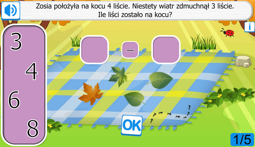Automatyczna kontrola wyników – oprogramowanie automatycznie sprawdza poprawność wykonanych zadań, co pozwala dziecku szybko zrozumieć błędy i efektywnie się uczyć.