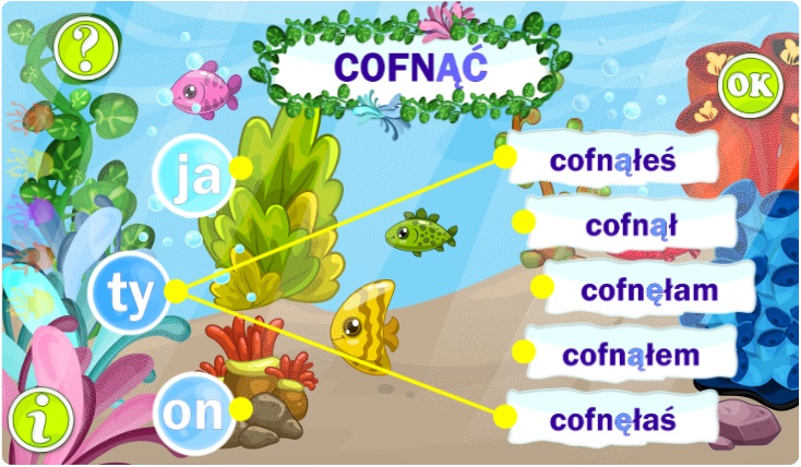 - Opanowanie pisowni czasowników w czasie przeszłym powstałych z bezokolicznika z cząstką –ąć;