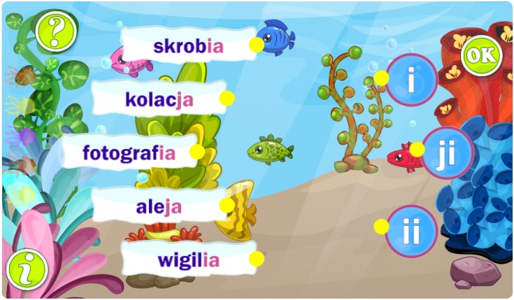 - rozpoznawanie zasad pisowni wyrazów z „ó”, „u”, „ch”, „h”, „rz” oraz „ż”