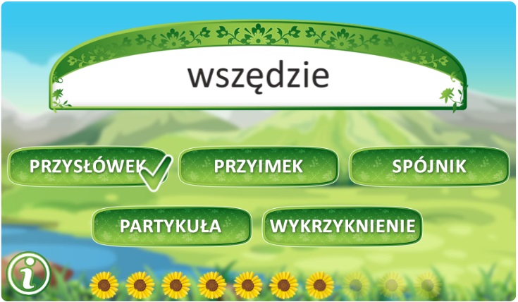 Zestaw quizów o nieodmiennych częściach mowy. Dlaczego są nieodmienne? Jakie role pełnią w zdaniu i na jakie kategorie możemy je podzielić? Rozpocznij od przysłówków i odkrywaj, na jakie pytania odpowiadają, jakie informacje przekazują, jak łączą się z innymi częściami mowy i w jakim celu. Z przyimkami baw się „DO późna”, „NA karuzeli” i „W piaskownicy”, a dowiesz się, jak można je pogrupować i z jakimi częściami mowy się łączą. Spójniki, te małe, lecz istotne, czekają na Twoje odkrycie. Znajdź je, nadaj im nazwy, wpisz, pogrupuj, policz i zdobądź wiedzę, które z nich wymagają przecinka. Partykuły i wykrzyknienia, pełne ekspresji, także mają swoje miejsce. Dowiedz się, do jakich kategorii można je przyporządkować i co wyrażają.